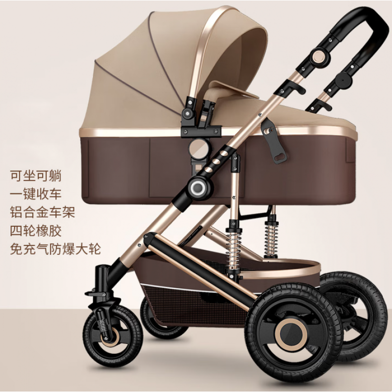 Reclining and foldable lightweight stroller with shock absorption, suitable for newborns and babies